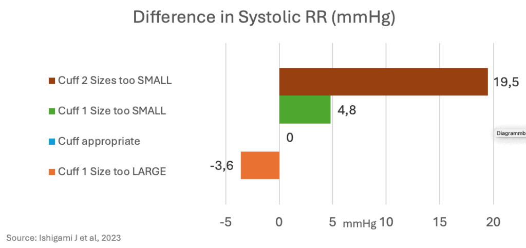 Im Oktober 2023 wurde die erste randomisierte Studie veröffentlicht, in der verschiedene Manschettengrößen an 195 Teilnehmern (Durchschnittsalter 54) getestet wurden. Die Studie ergab, dass die Verwendung der falschen Manschettengröße zu Fehldiagnosen führte, insbesondere wenn die Manschetten für übergewichtige Patienten zu klein waren: